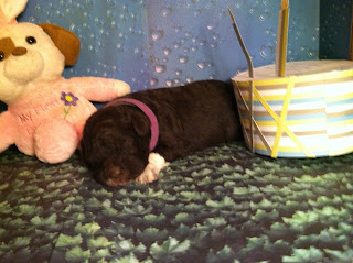 For our 5 week photos, we tried stacking the puppies on a grooming table. We had pretty minimal success getting the puppies to actually stand in a stack so these photos do not really represent angulation or tail set. I will be giving the puppies a bath quite soon and will trim some of the extra fluff from the rear to expose the rear angulation. By next week they should be a bit more used to the grooming table and hopefully stand still for a second or more for photos.